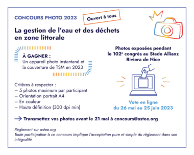 A l’occasion de la 102e édition du congrès de l’Astee qui se déroulera à Nice, du 5 au 8 juin 2023, nous vous proposons un concours photo sur le thème de la gestion de l’eau et des déchets en zone littorale.